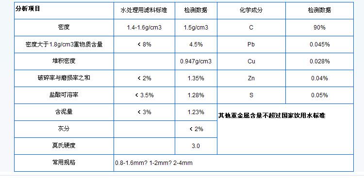 無煙煤濾料技術參數表;